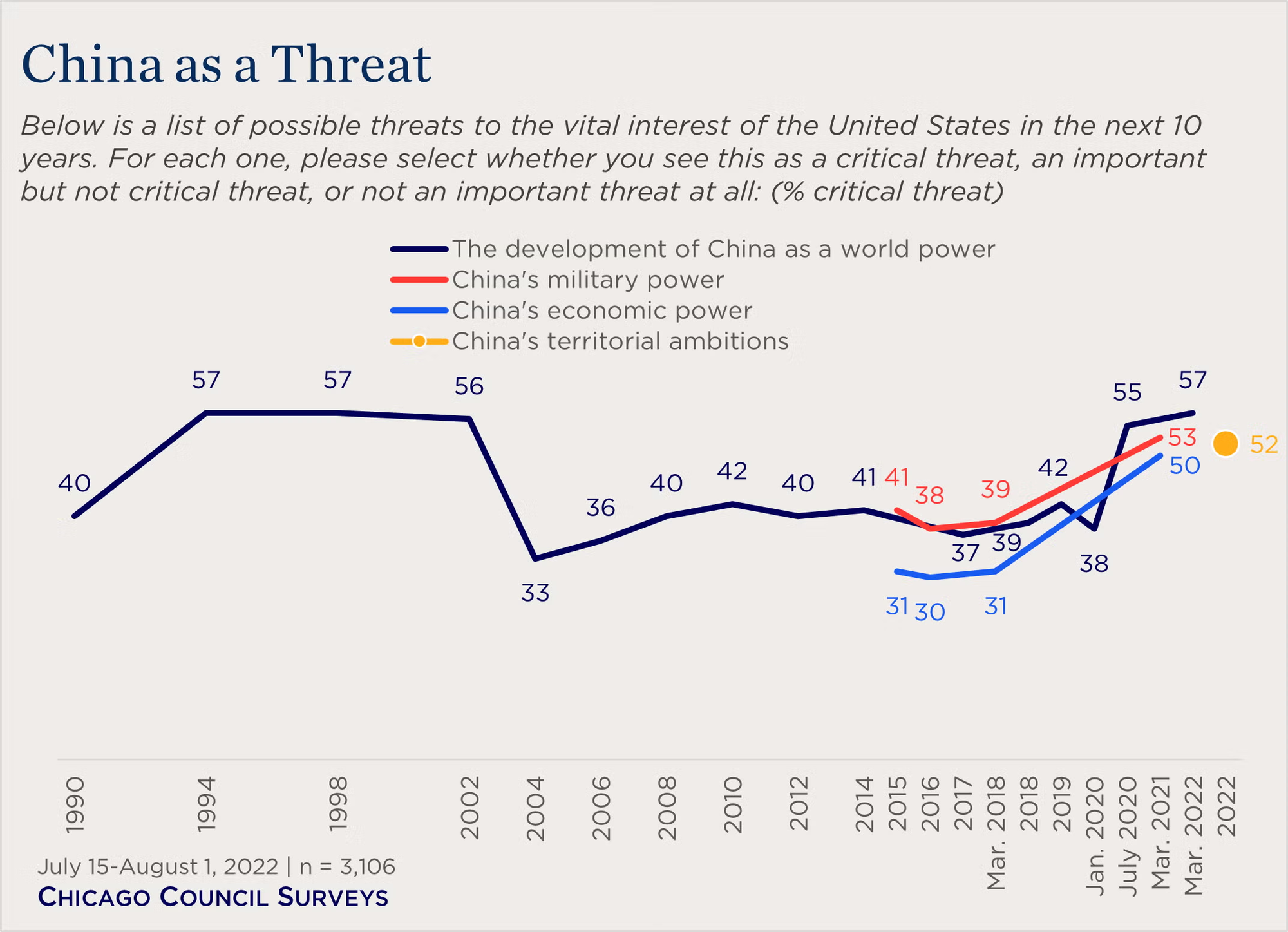 Silicon Valley concerns with China are also fairly recent in its present form. Before the late 2010s, China was often treated by the Valley less as a civilizational rival than as a market, a manufacturing base, a source of capital, or a hardware ecosystem to learn from. Around 2019, that changed. Public opinion in the United States turned sharply more negative amid the trade war; Pew found unfavorable views of China jumped from 47 percent in 2018 to 60 percent in 2019, the largest one-year shift in its polling since it began tracking the question.