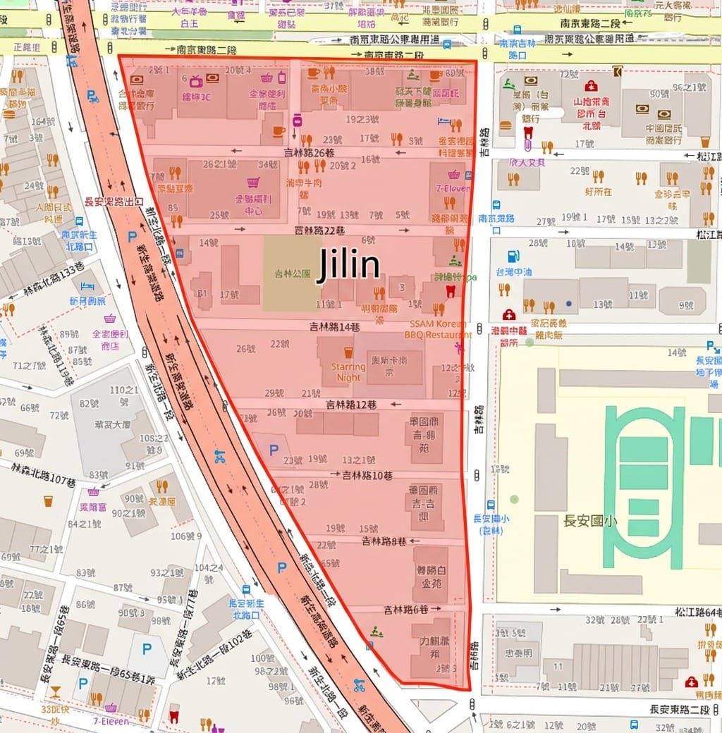 The neighborhood pictured above is called Jilin. I lived here for all of 2024 while I attended National Taiwan University, the island’s primary public university. It consists of ten square blocks tucked into the corner formed by the Xinsheng overpass and one of Taipei’s main thoroughfares, Nanjing East Road.